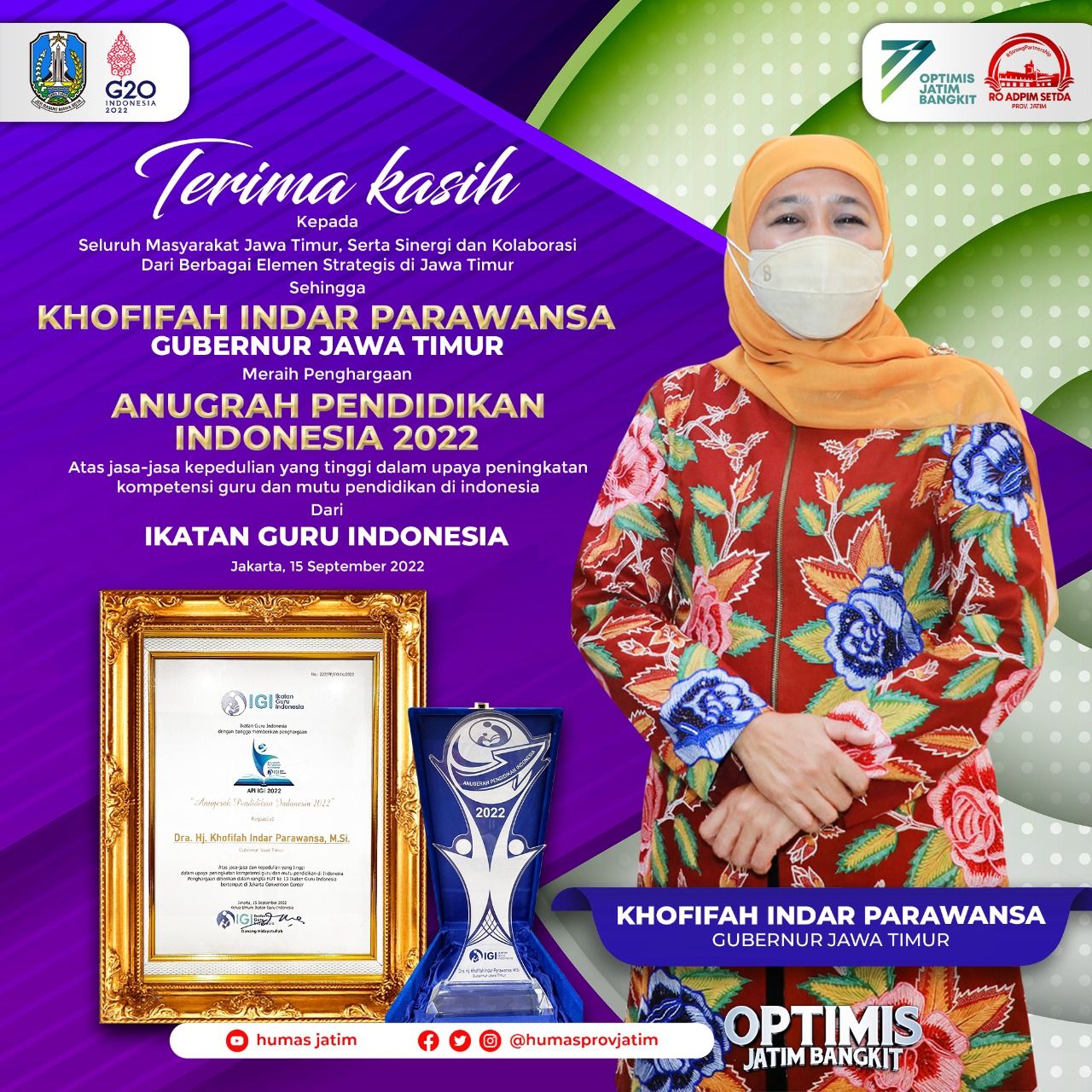 Baca Juga: Gubernur Khofifah Raih Penghargaan Anugerah Pendidikan Indonesia dari Ikatan Guru Indonesia (IGI)
