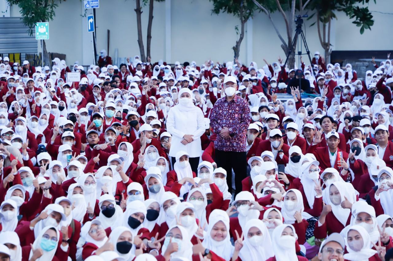 Surabaya (JatimUpdate.id) - Sebanyak 2.035 mahasiswa baru Universitas Muhammadiyah Surabaya (UMS) mendapat wejangan dari Gubernur Jawa Timur Khofifah Indar Parawansa mengenai pentingnya penguatan sinergi social capital dan intellectual capital di halaman kampus UMS , Senin (26/9/2022) sore .