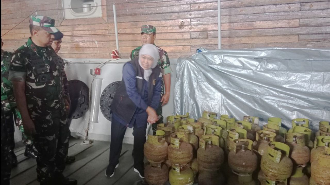 Surabaya, JatimUPdate.id, - Pangkoarmada II Laksda TNI Maman Firmansyah, Pangdam V Brawijaya Mayor Jenderal TNI Farid Makruf dan Gubernur Jawa Timur Khofifah Indar Parawansa melepas KRI Soeharso yang membawa bahan pangan ke Masalembu, Kabupaten Sumenep, Sabtu (4/3) sore.