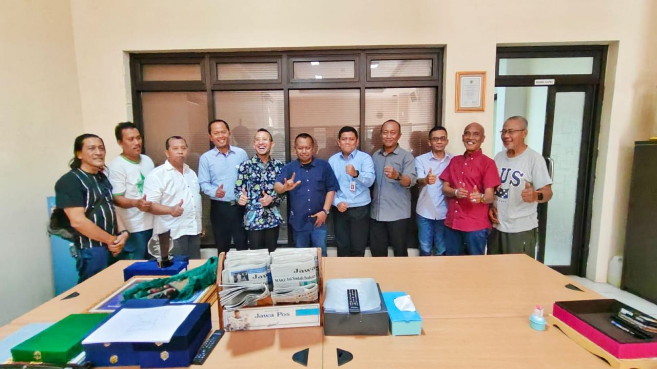 Setelah berbincang berbagai hal, rombongan OJK Regional 4 Jatim ini pamit meninggalkan kantor PWI Jatim.