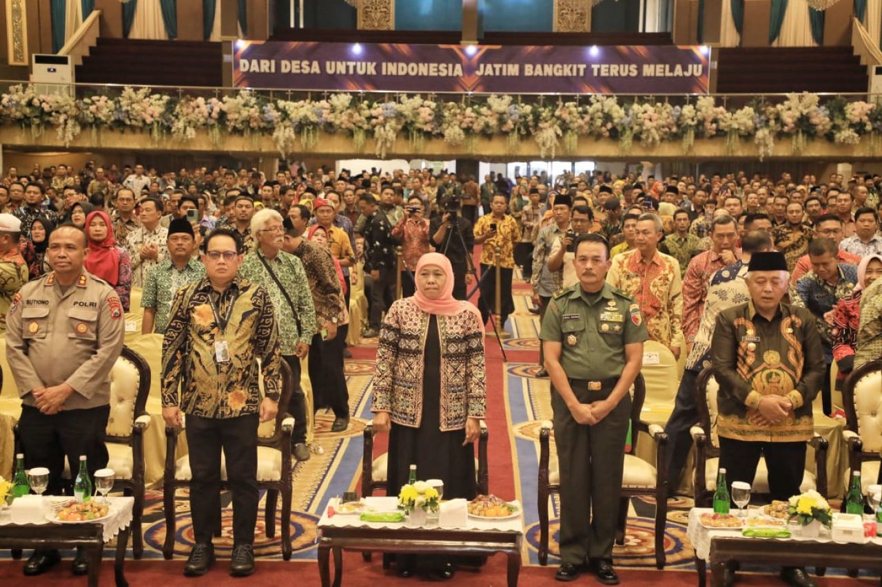 Launching ini ditandai dengan penekanan tombol sirine oleh Gubernur Khofifah didampingi Sekdaprov Jatim Adhy Karyono dan Kepala DPMD Provinsi Jatim Budi Sarwoto.