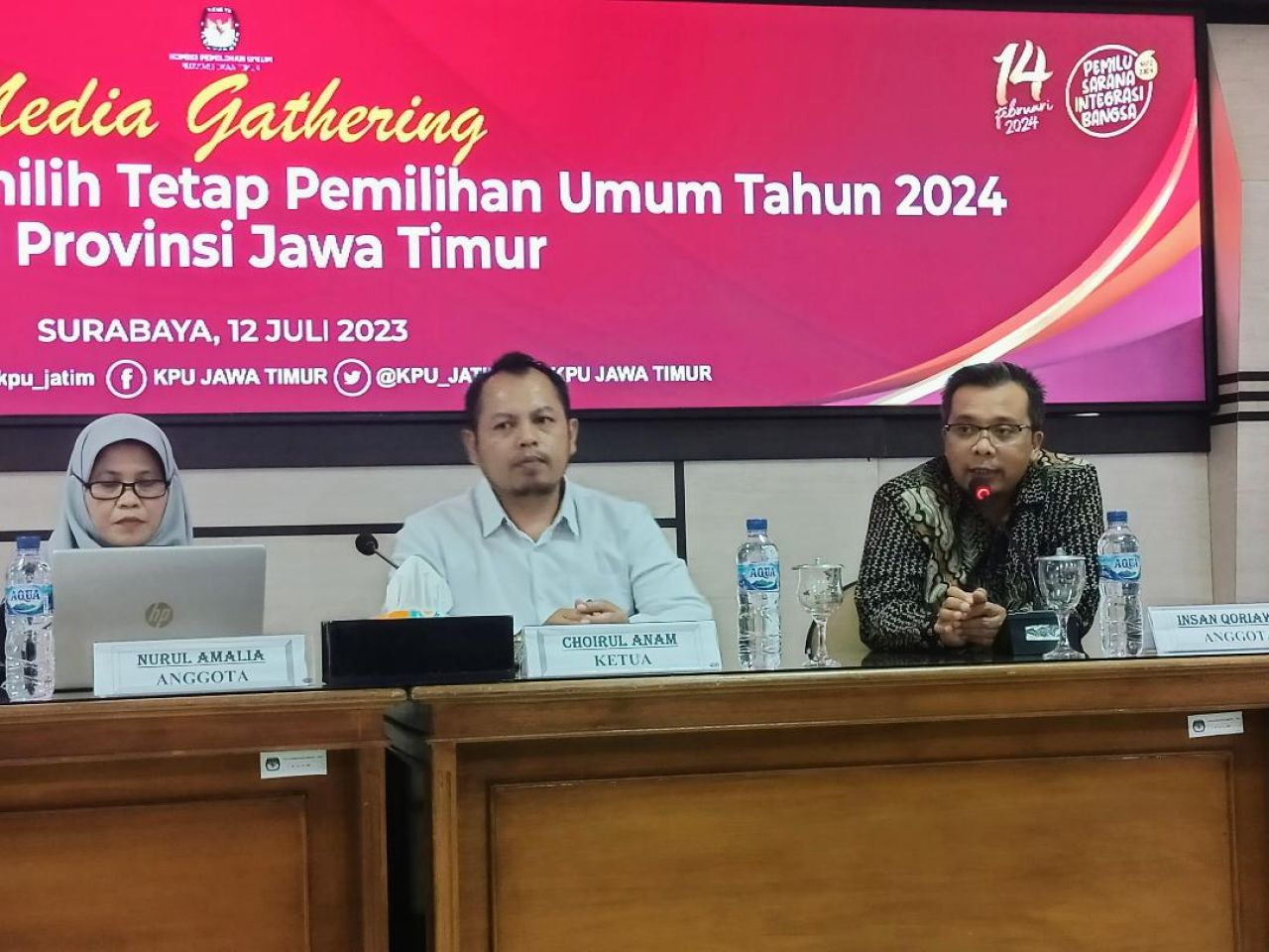 "Jadi ketiga syarat itu harus terpenuhi." ujar Amalia saat media gathering Rekapitulasi Daftar Pemilih Tetap Pemilihan Umum Tahun 2024, di Aula Lantai II KPU Jatim, Rabu (12/7/2023).