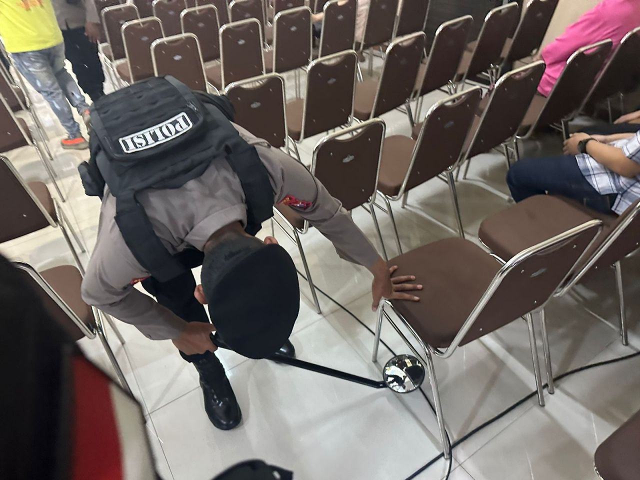 Selain itu petugas juga melakukan pemantauan terhadap setiap kendaraan yang masuk dan keluar dari area gereja. Tindakan ini diambil sebagai langkah antisipasi terhadap potensi ancaman dari luar, sehingga keamanan dapat dijaga dengan maksimal.