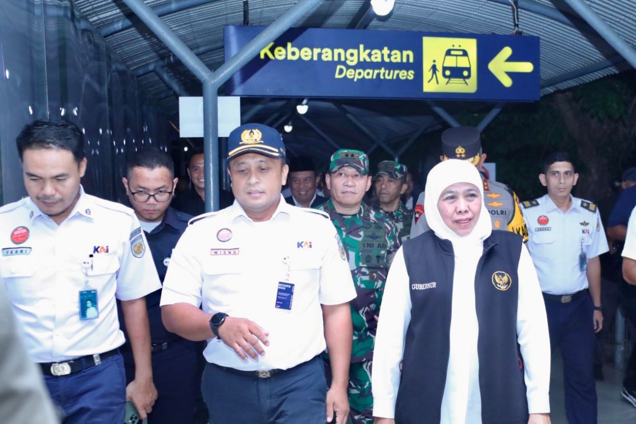 Surabaya, JatimUPdate.id,- Gubernur Jawa Timur Khofifah Indar Parawansa bersama Forkopimda Jatim melakukan peninjauan arus penumpang pada libur Nataru di Stasiun Gubeng Surabaya, Minggu (24/12) malam.