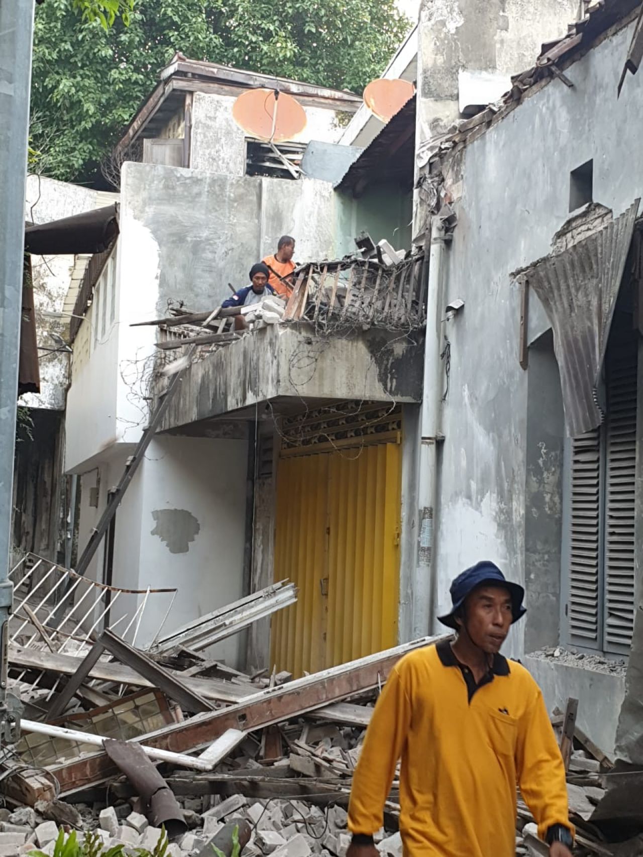 "Semua warga disini khawatir. Toko saya sempat rusak dan bocor ketika hujan karena akibat tertimpa runtuhan lalu saya perbaiki lagi, dan saya takut tertimpa reruntuhan lagi. Saya sudah habis banyak untuk perbaiki toko saya hingga ratusan juta," ungkapnya.
