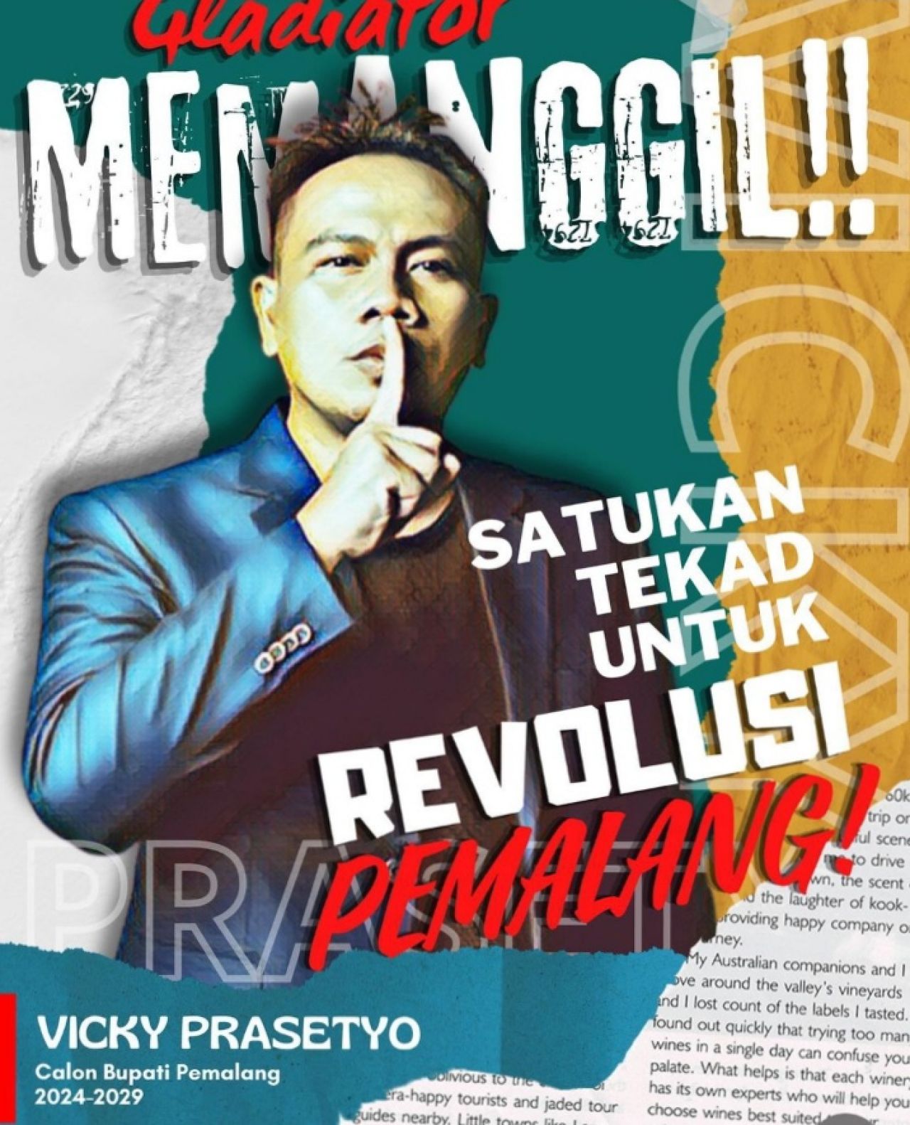Ket.Gambar : Poster Alat Peraga Kampanye Vicky Prasetyo (Sumber foto : instagram Vicky Prasetyo)